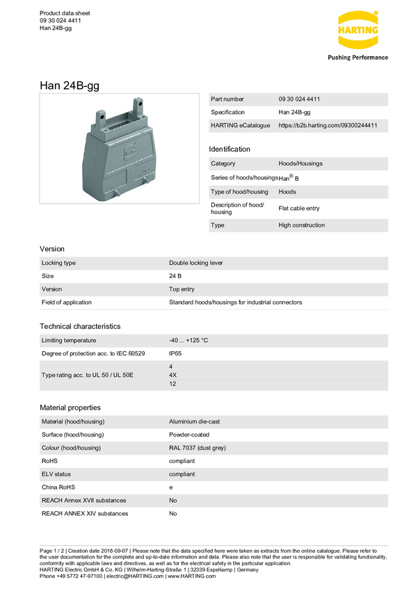 Obudowa tulejki 09 30 024 4411 Harting 1 szt.