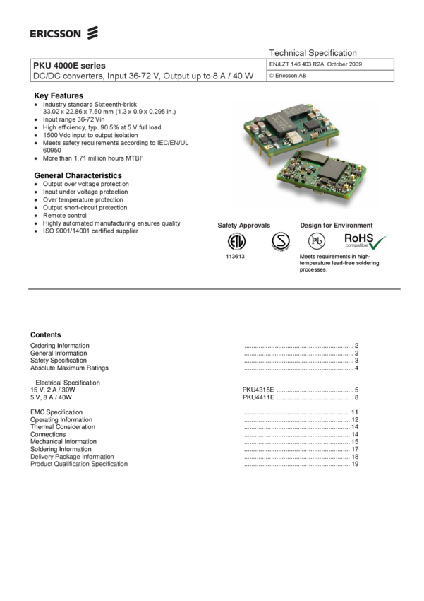 Module DC-DC Single-OUT 5V 8A 40W 6-Pin 1/16-Brick