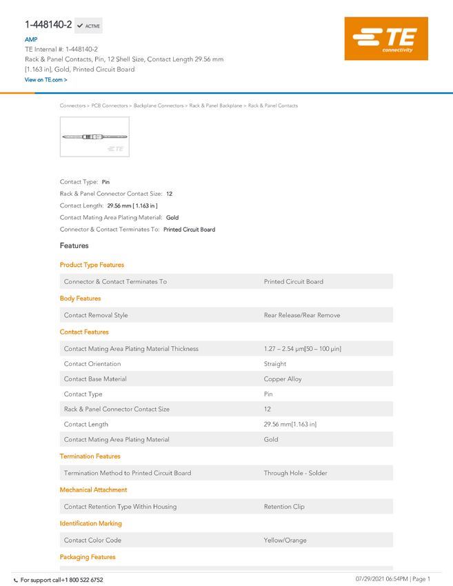 TE Connectivity 1-448140-2 TE AMP ARINC Products, 1 szt.