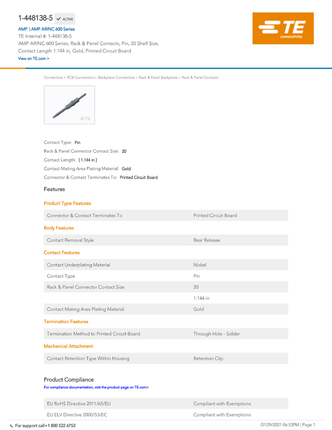 TE Connectivity 1-448138-5 TE AMP ARINC Products, 1 szt.
