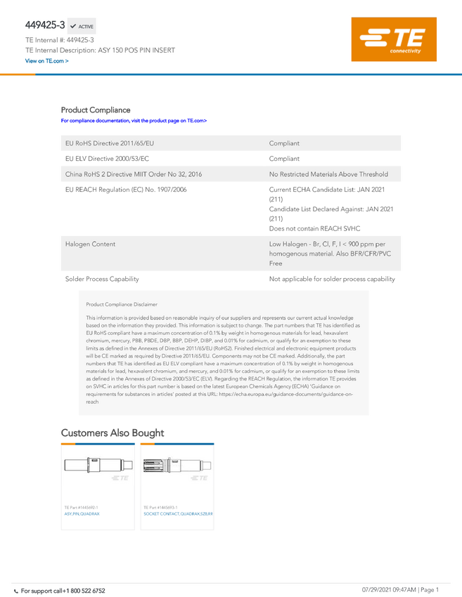 TE Connectivity TE RAY System 6 449993-000, 1 szt.