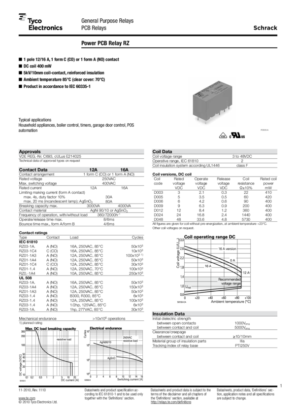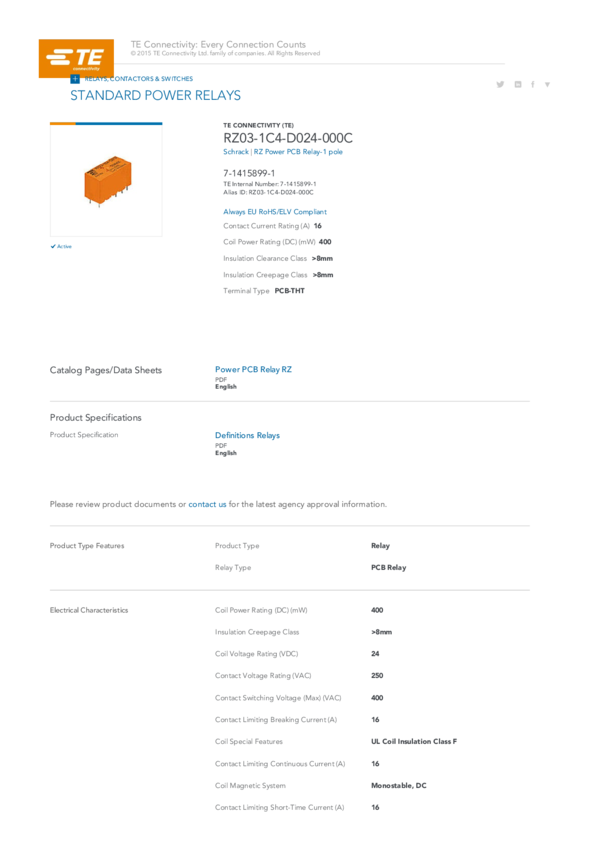 Electromechanical Relay SPST-NO 12A 24VDC 1.44KOhm Through Hole