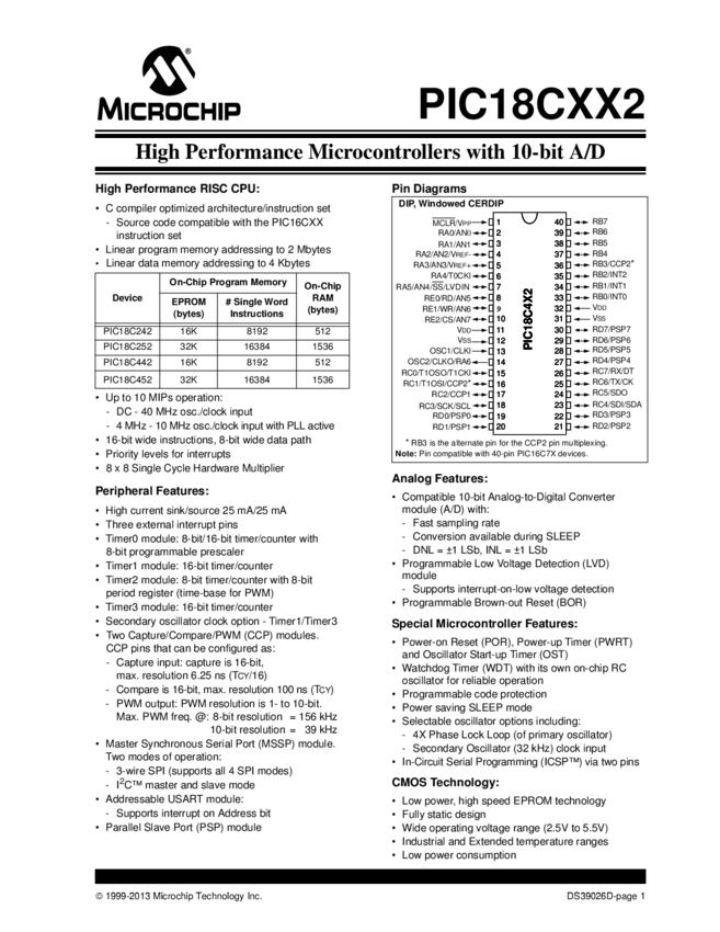 PIC18C242/252/442/452 Datasheet (02/05/2013)