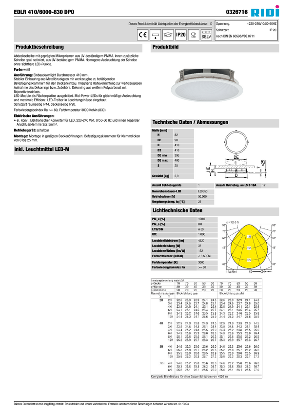 Oświetlenie wewnętrzne LED RIDI 326716 326716 37 W 4520 lm
