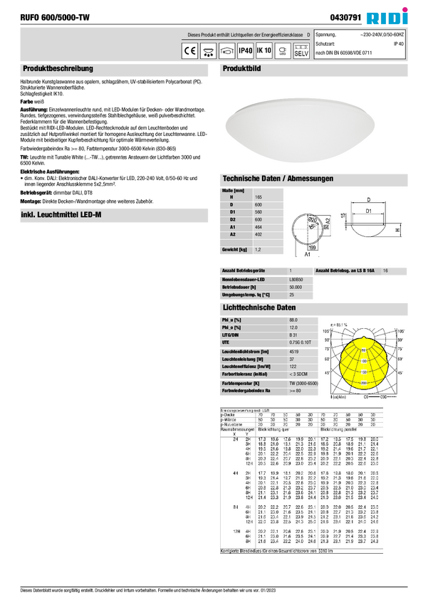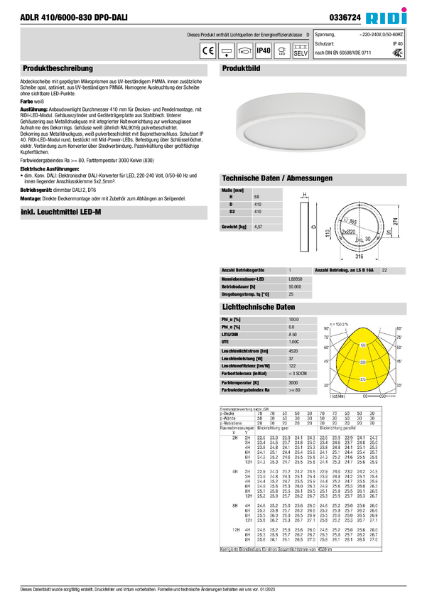 Oświetlenie wewnętrzne LED RIDI 336716 336716 37 W 4520 lm