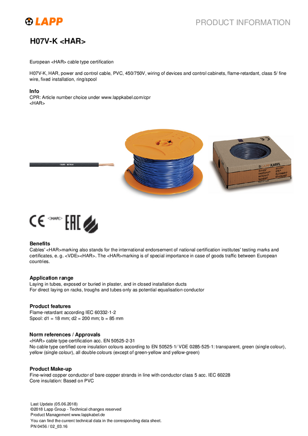 LAPP 45209/500 Przewód sterowniczy ÖLFLEX® CRANE, 5 G 1.5 mm², 500 m