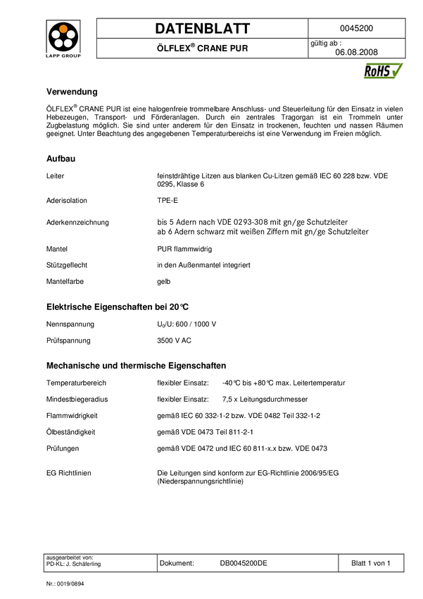 LAPP 45211/500 Przewód sterowniczy ÖLFLEX® CRANE, 12 G 1.5 mm², 500 m