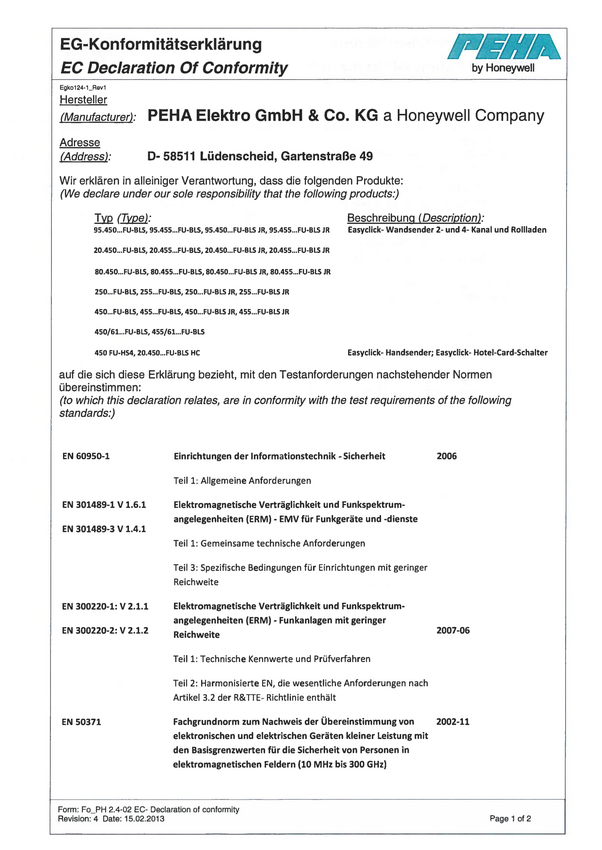 PEHA by Honeywell Komplet Nadajnik ścienny czarny 45213 1 szt.