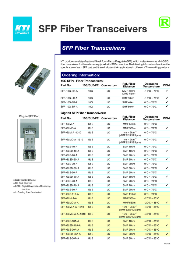 KTI 4526 SFP-10G-LR-A Moduł transceivera 10 km Typ modułu LC