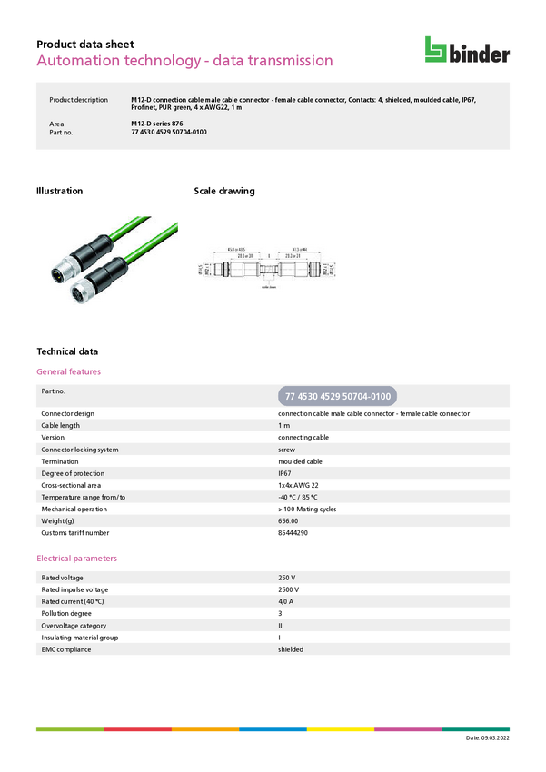 binder 77 4530 4529 50704-0100-20 Złącze konfekcjonowane czujnika/aktuatora złącze żeńskie proste, złącze męskie proste