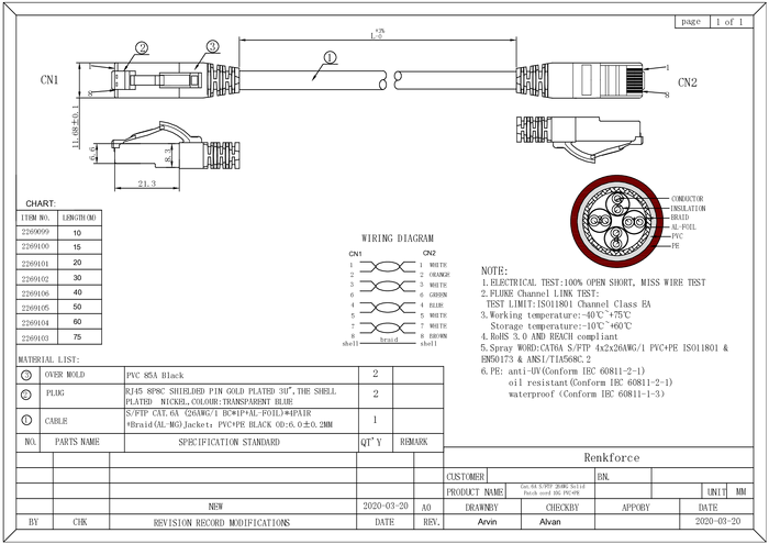 kabel LAN RJ45 RJ45 Renkforce RF-4538202 CAT 6a S/FTP 20.00 m czarny