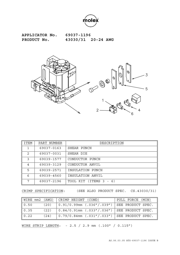 Conductor Punch for 69037-1196 Mini-Mac Applicator