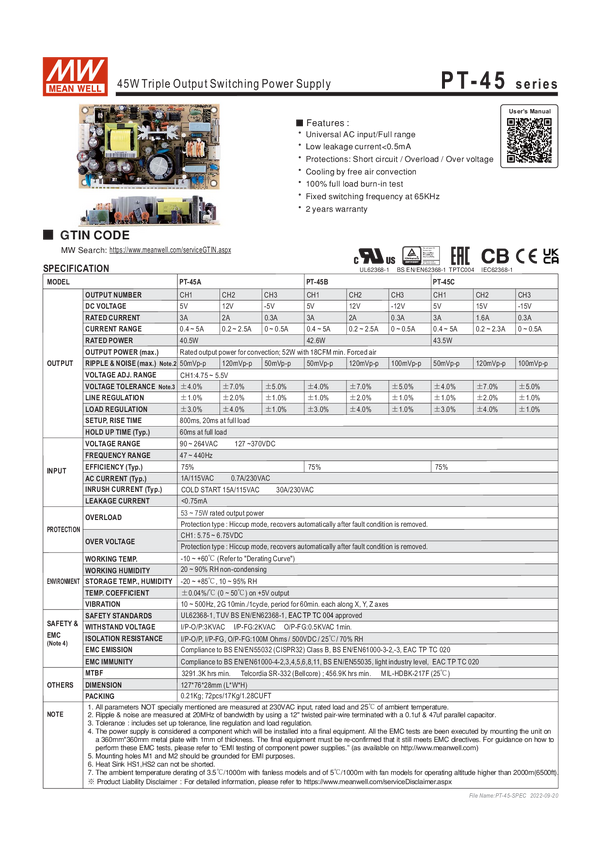 MEAN WELL PT-45C Zasilacz 43 W