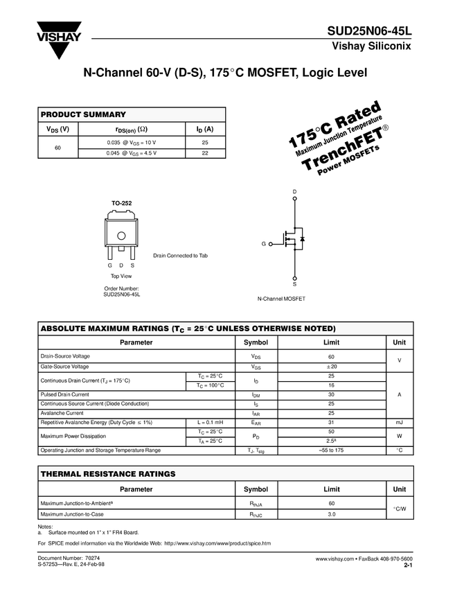 SUD25N06-45L