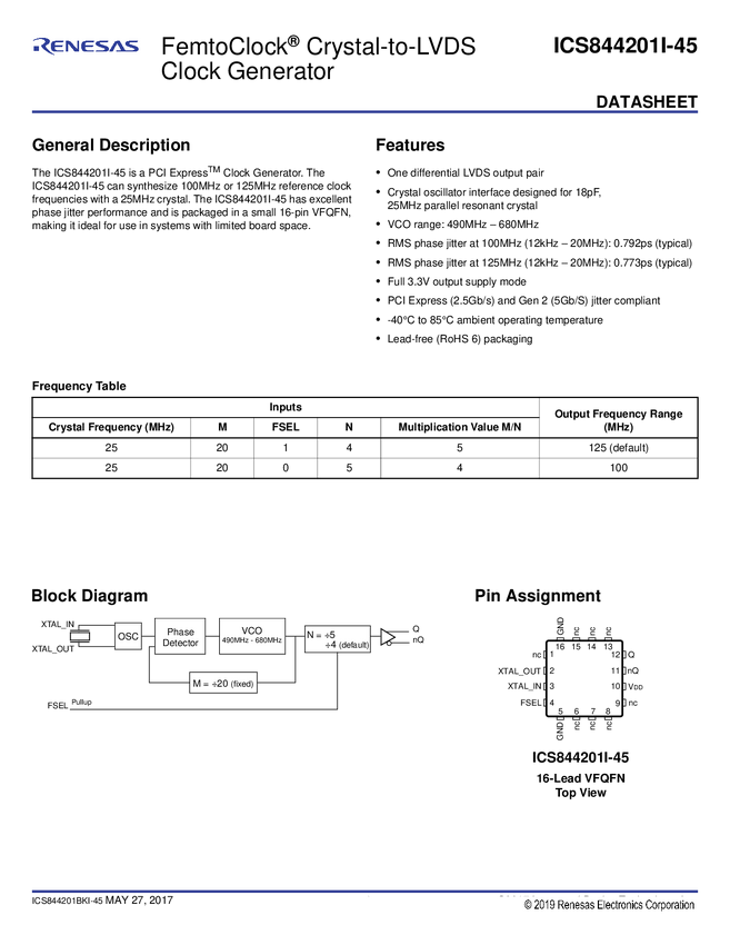 FemtoClock Crystal-to-LVDS Clock Generator