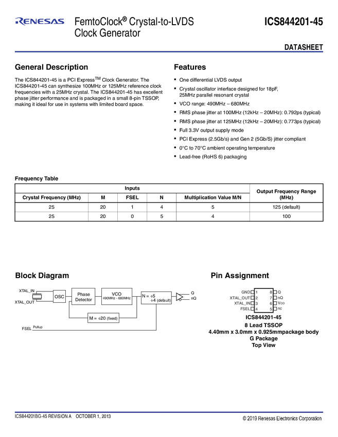 FemtoClock NG Crystal-to-3.3V LVPECL Frequency Synthesizer