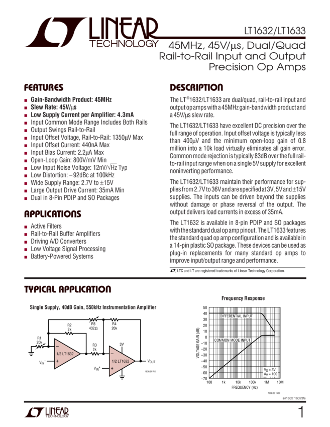 45MHz, 45V/us, Dual Rail-to-Rail Input and Output Precision Op Amps