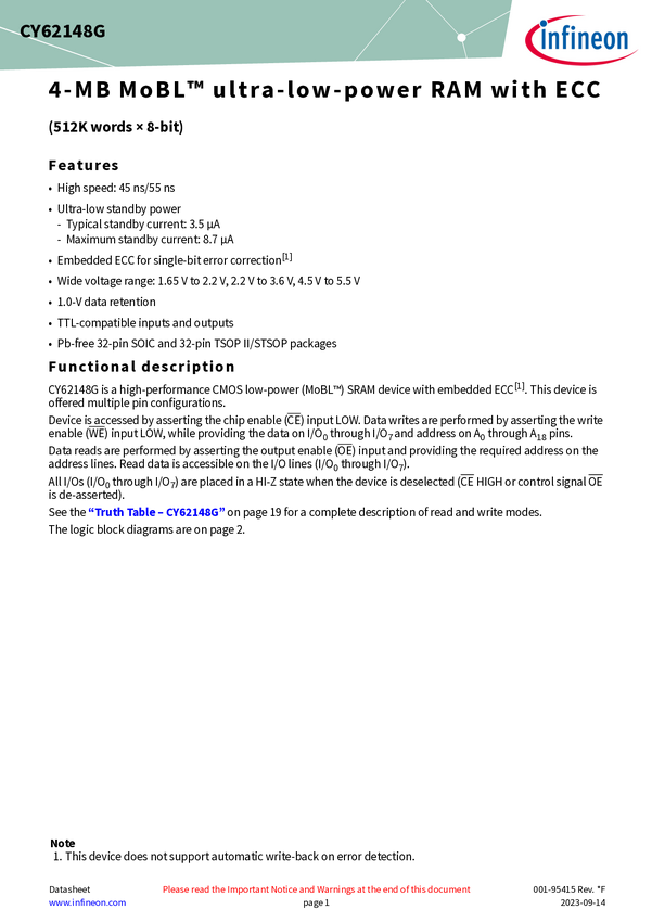 4Mb 3.0V Industrial 45ns x8 parallel MoBL™ SRAM with ECC in 32-pin sTSOP