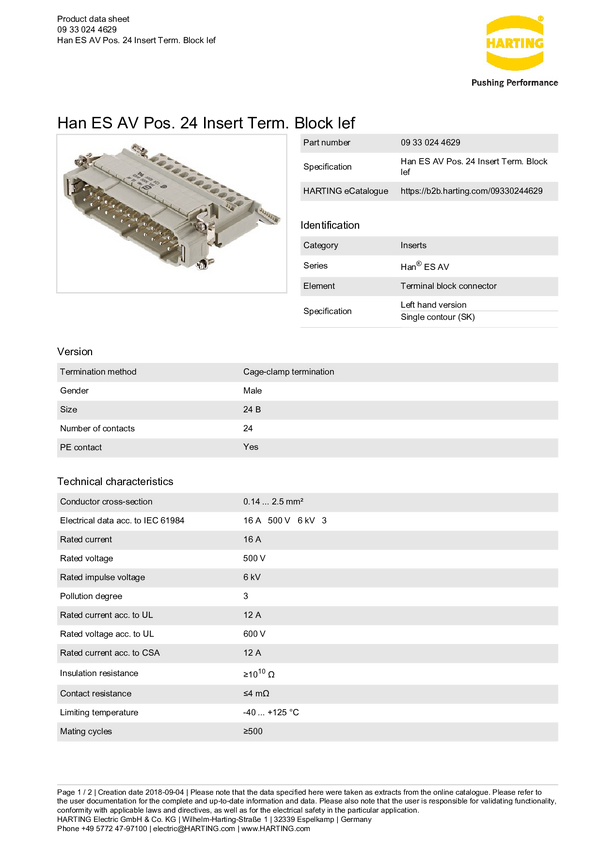 Złącze przemysłowe 09 33 024 4629 Harting Zawartość: 1 szt.