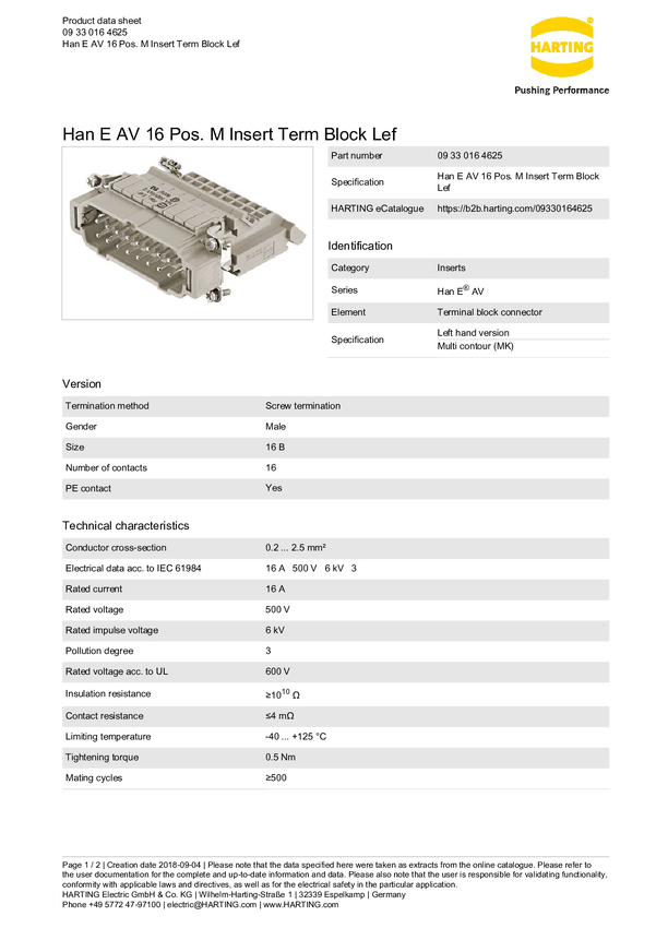 Złącze przemysłowe 09 33 016 4625 Harting Zawartość: 1 szt.