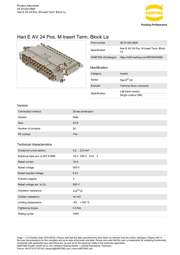 Złącze przemysłowe 09 33 024 4626 Harting Zawartość: 1 szt.