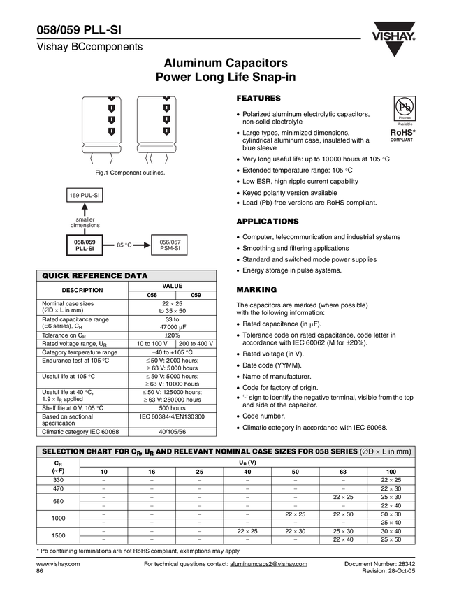 Kondensator elektrolityczny wysokiej mocy Vishay 2222 059 46221 105°, 220u, 400V, snapi