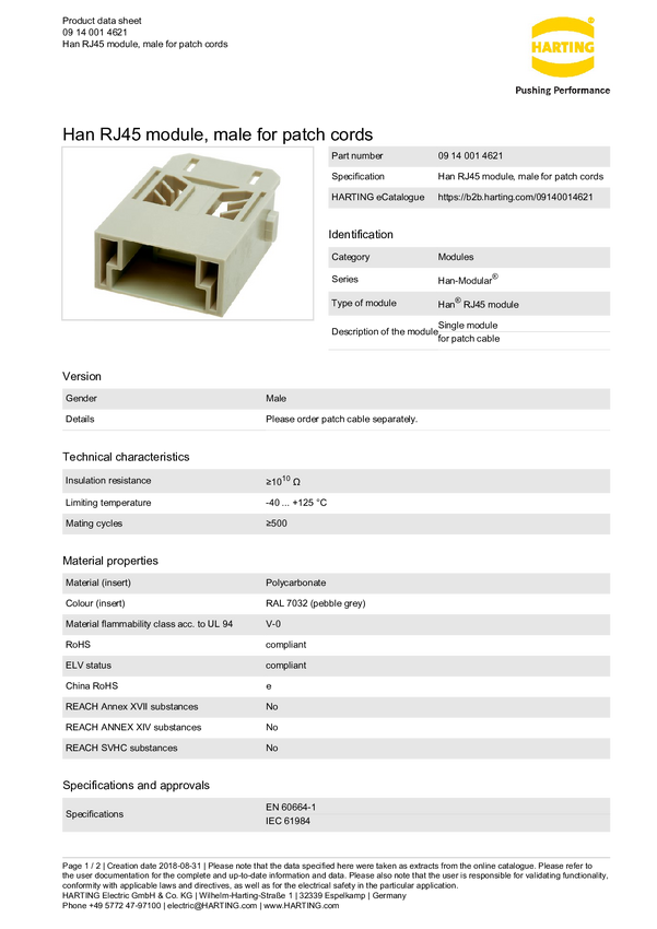 Złącze przemysłowe 09 14 001 4621 Harting Zawartość: 1 szt.