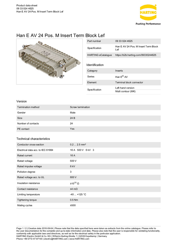 Złącze przemysłowe 09 33 024 4625 Harting Zawartość: 1 szt.