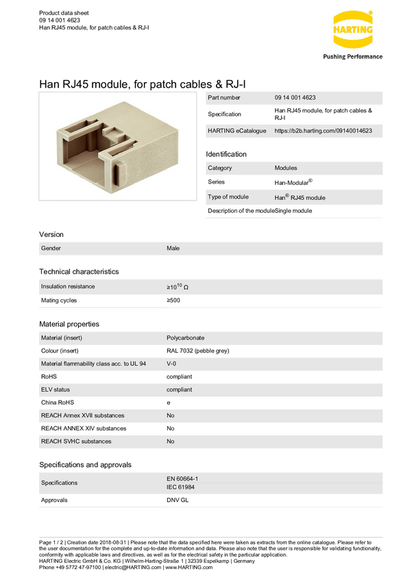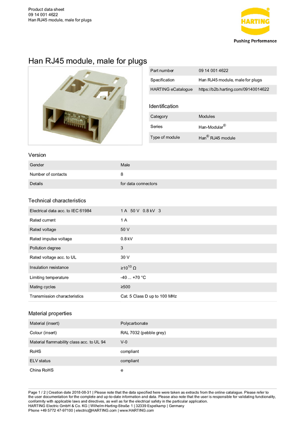 Złącze przemysłowe 09 14 001 4622 Harting Zawartość: 1 szt.