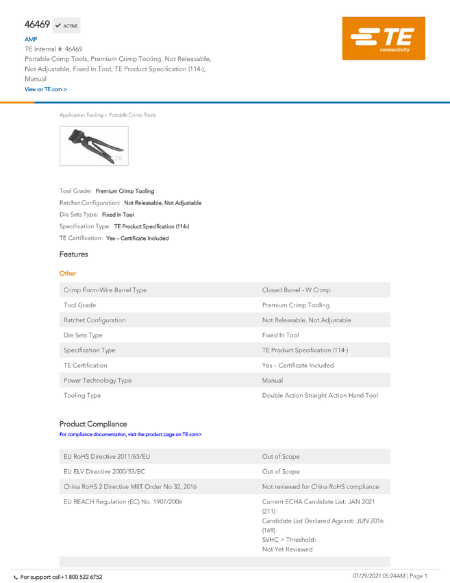 TE Connectivity TE AMP Certi-Crimp Hand Tools 46469