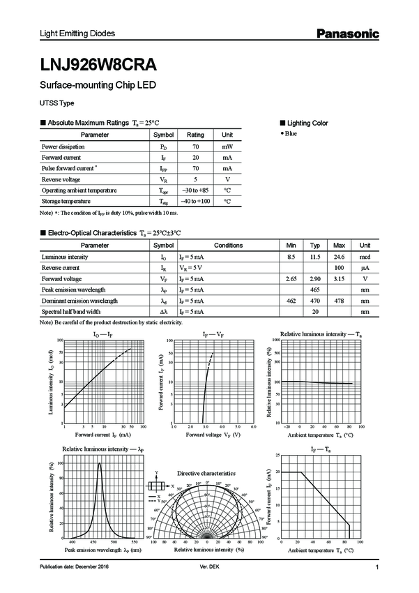 LED Uni-Color Blue 465nm Chip LED 2-Pin PLCC T/R