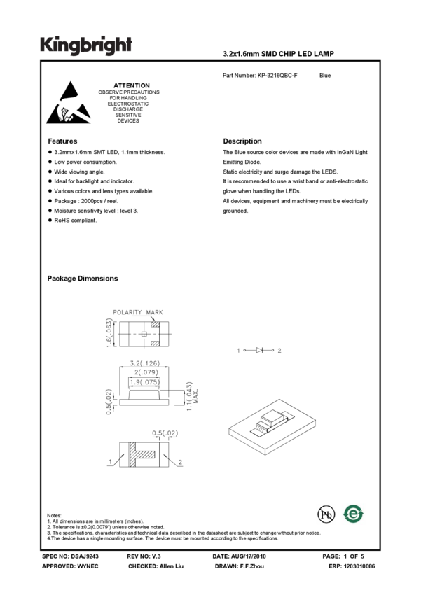 LED Uni-Color Blue 465nm Chip LED 2-Pin SMD