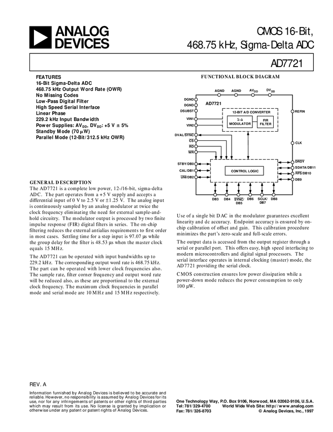 CMOS, 12-/16-Bit, 312.5 kHz/468.75 kHz Sigma-Delta ADC