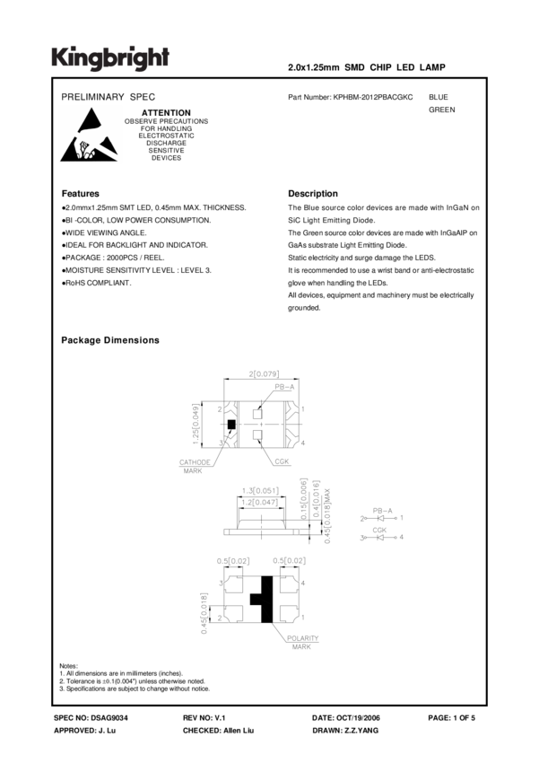 LED Bi-Color Blue/Green 468/574nm Chip LED 4-Pin SMD T/R