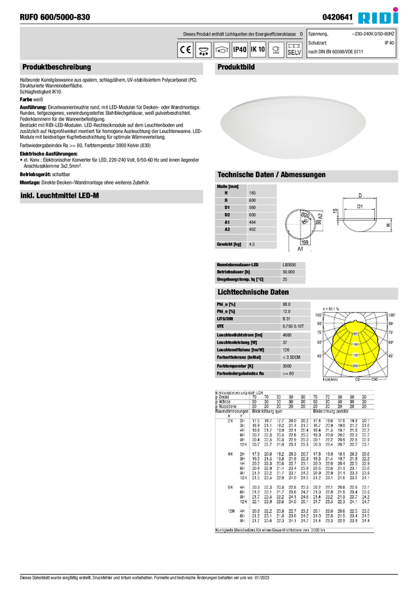 Lampa sufitowa LED RIDI 0420641//396 0420641//396 4680 lm biały