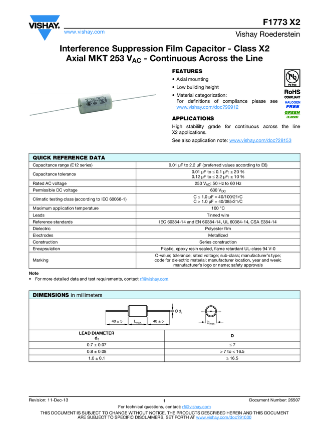 Cap Film 0.47uF 253VAC PET 10% (14 X 26.5mm) Axial 100°C Loose in Box