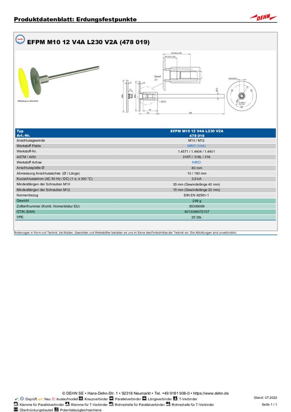 DEHN 478019 EFPM M10 12 V4A L230 V2A Stały punkt uziemienia 1 szt.