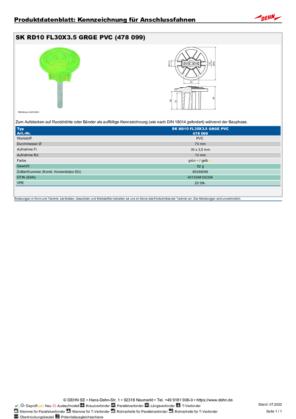 DEHN 478099 SK RD10 FL30X3.5 GRGE PVC Nakładka ochronna 1 szt.