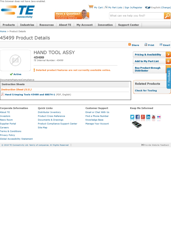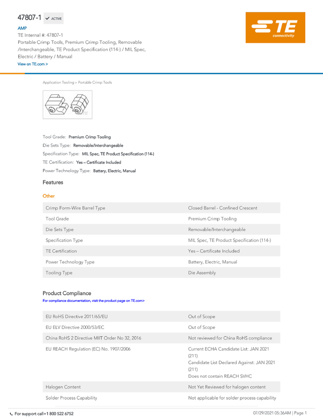 TE Connectivity TE AMP Certi-Crimp Hand Tools 47807-1