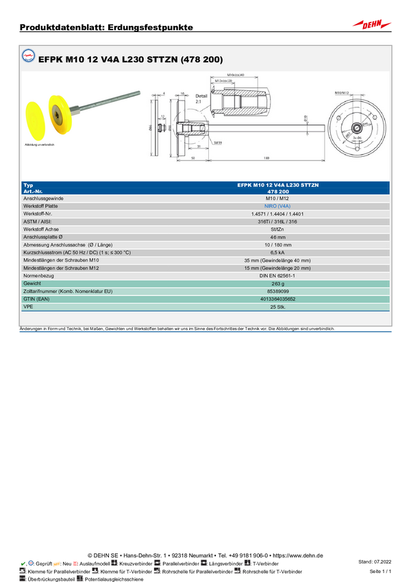 DEHN 478200 EFPK M10 12 V4A L230 STTZN Stały punkt uziemienia 1 szt.