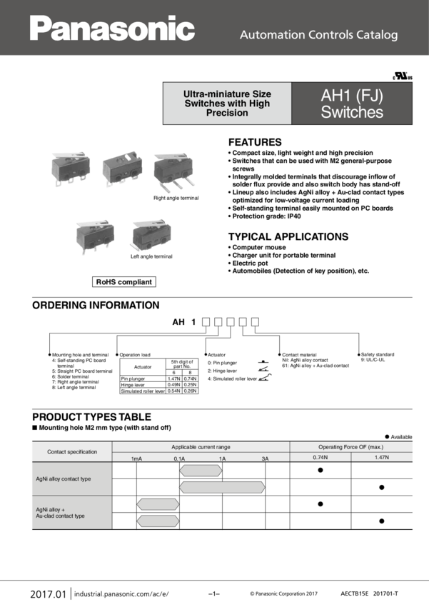 SWIT SA NO/NC SPDT PIN PLUNGER QC 5A 250VAC 250VDC 1.47N TH