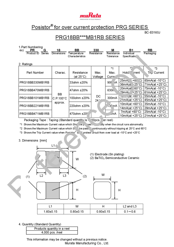 Thermistor PTC 47Ohm 20% 2-Pin 0603 Paper T/R