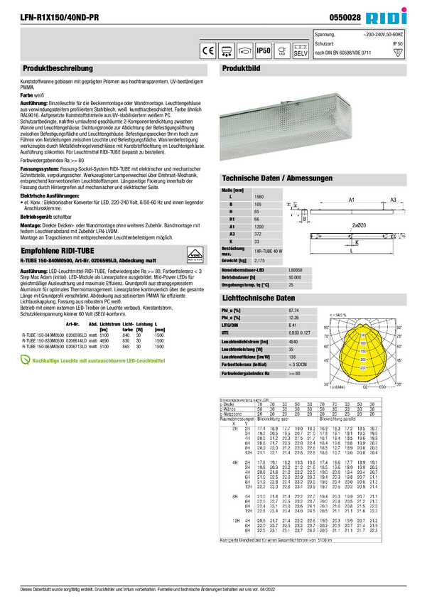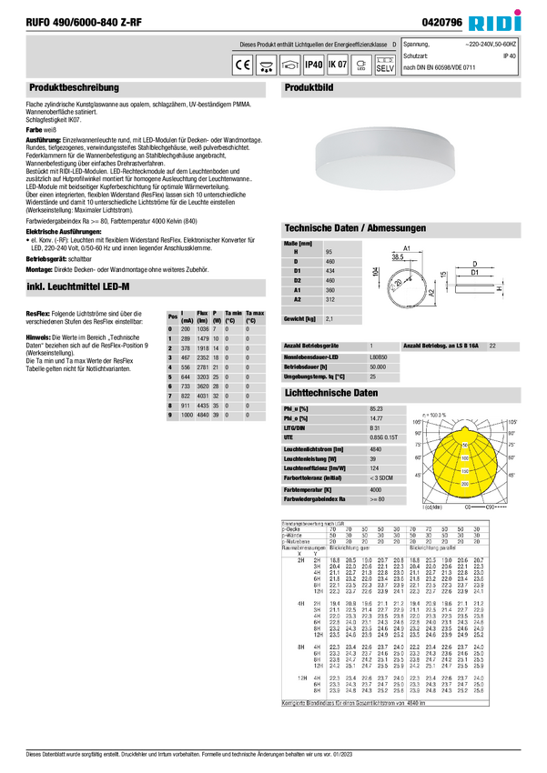 Lampa sufitowa RIDI 550028 550028 4840 lm biały