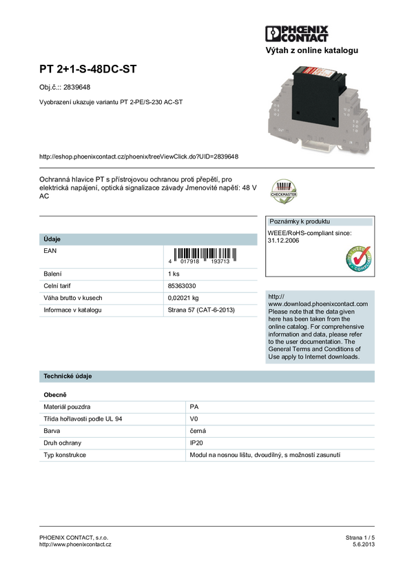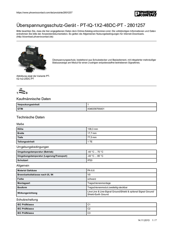 Ochrona przepięciowa (PT-IQ-1X2-48DC-PT)