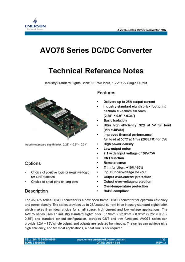 Module DC-DC 1-OUT 5V 15A 75W 8-Pin 1/8-Brick