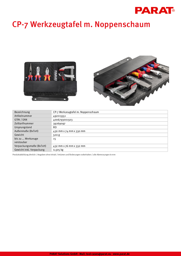 Tablica na narzędzia Parat 492015551 Wymiary: (D x S x W) 430 x 74 x 330 mm