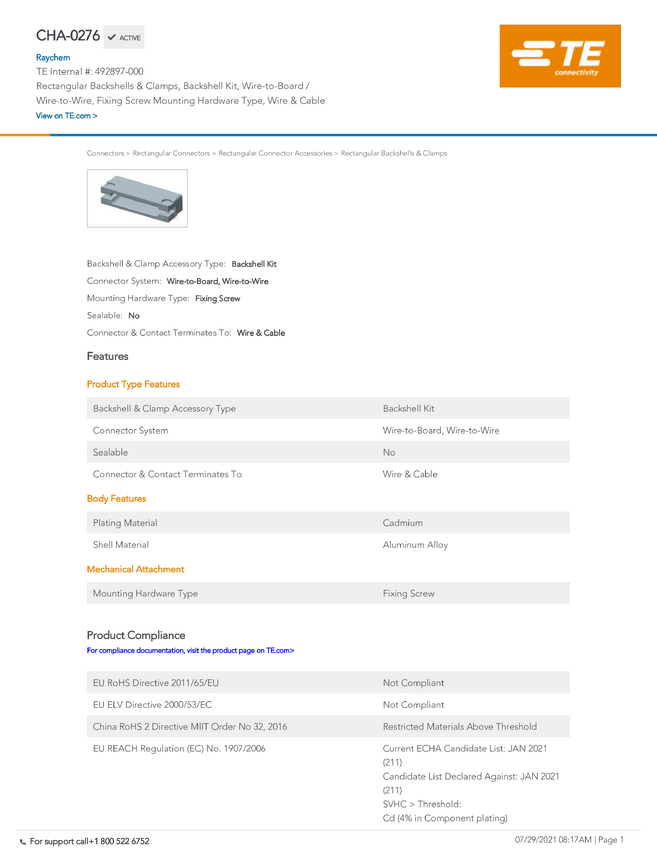 TE Connectivity 492897-000 TE RAY Miscellaneous MTC, 1 szt.