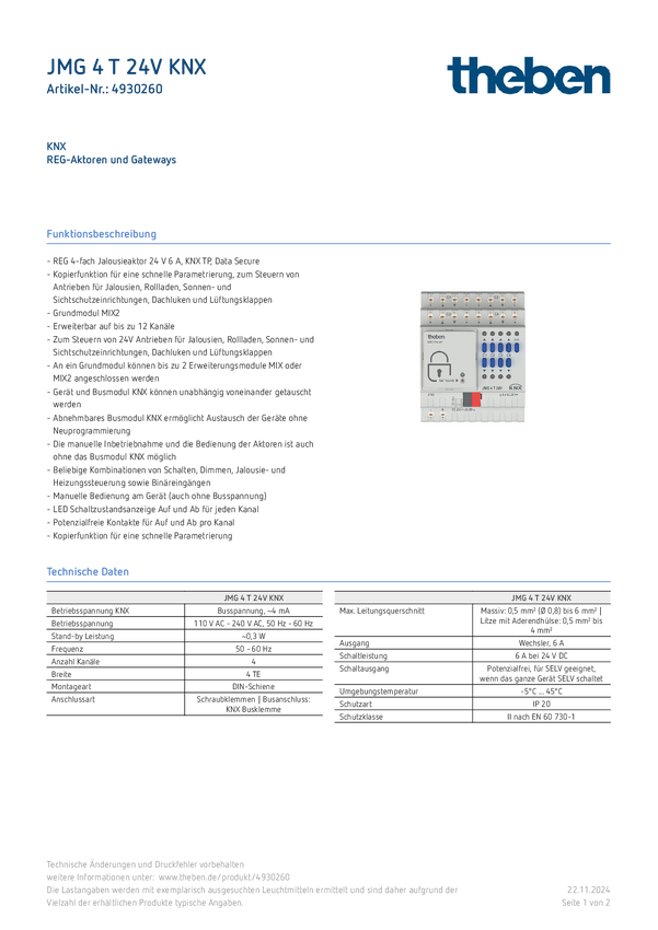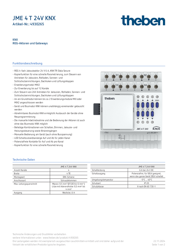 Napęd żaluzji Theben 4930265 JME 4T 24V KNX
