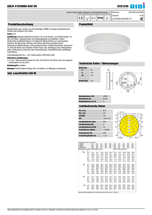 Oświetlenie wewnętrzne LED RIDI 321214 321214 37 W 4930 lm