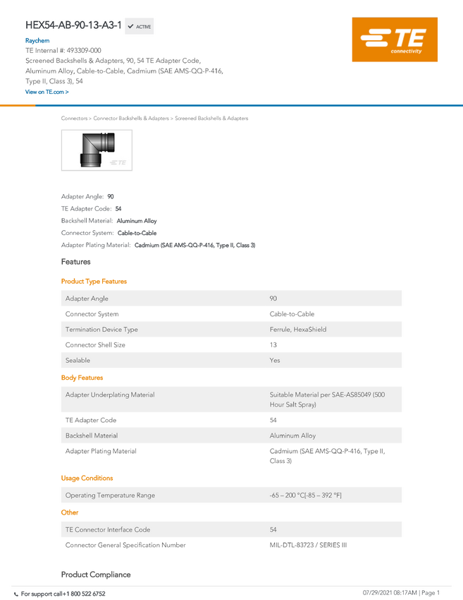 TE Connectivity TE RAY Hexashield Products 493309-000, 1x -02050006738467